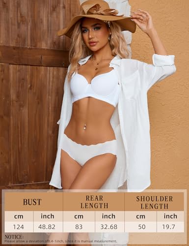 Fabric type: 100% PolyesterCare instructions: Hand Wash OnlyOrigin: ImportedFree Size : Our bathing suit cover up for women are designed with one size, can be perfect for US Size S-XL. The bust is about 48.82’’(124cm), the length is about 32.68’’(83cm), and the shoulder is approx 19.7’’(50cm), linen shirts for women can fit most women body shape.Lightweight & pleasant : The cover ups for swimwear women are made of 100% polyester, which can be soft and lightweight. With our loose beach cover ups for women to protect yourself from sun and keeps cool on hot summer.Sexy & Cool : The swim cover up for women features with button down and turn down collar, loose long sleeve, white linen shirt women with pocket, can be easy to take on and take off. Sexy V neck style of white cover up for swimsuits making you cool and charm in hot days.Wide Application : White button down swimsuit coverup bikini cover up can be match with bikini or any summer shorts, perfect for beachwear, resort wear, water park, pool and cruise wear. Also white button down beach cover up can be used as a casual shirt pair with shorts, jeans when tie up.Ideal Gifts : The linen button down shirt women can be perfect gifts for women as birthday gifts, anniversary gifts and more. Hand wash or gentle machine wash recommend. You can iron on reverse side in low temperature for better appearance and hand feel. Perfect for everyday use. premium materials and excellent craftsmanship ensure long-lasting durability.