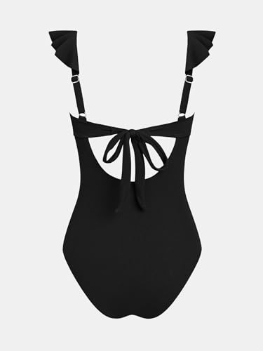 • Design: The Charming One Piece Swimsuit Features Textured Waisted Stitching and Square Neck Ruffled Design Make You Looks Flattering; This Elegant Bathing Suit with Adjustable Straps Cutout Back Strappy Tie Can Give You cozy Feeling
