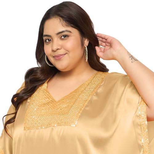 Women’s Plus Size Satin Sequin Kaftan Dress with Kimono Sleeves, Casual Resort Cover Up, trendy Loose Fit