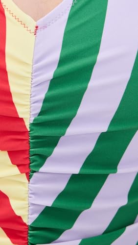 • Ruched design, Plunge V neck and back, Mixed stripe pattern