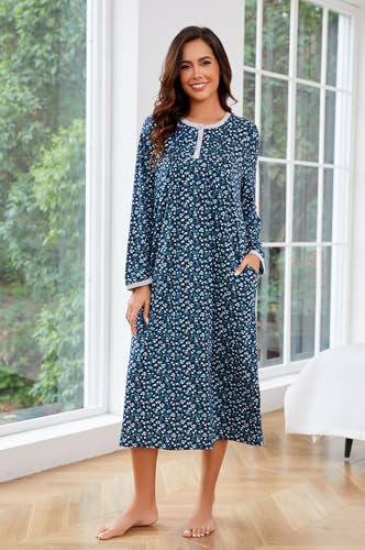 trending ! AVIIER Cotton Nightgowns for Women supple Long Sleeve Night Gown with Pockets