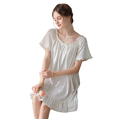 trending ! Women's Cotton Nightgowns Vintage Lightweight Gown Sets Short Sleeve Princess Nightdress
