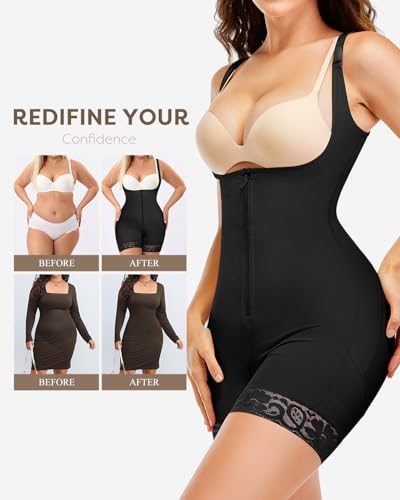 • 【Shaping Support & Curve Enhancement】Front zipper closure with built-in hook and eye makes it exceptionally easy to put on and take off. Our faja body shaper's double-layer tummy tuck design controls="controls" belly fat and accentuates your natural curves. The exceptional U-shaped open bust design lifts and gathers the bust for a fuller look.