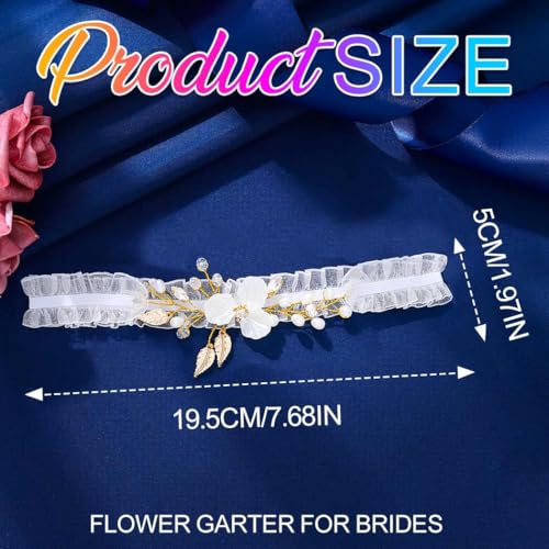 HEREAD Flower Wedding Garters for Bride Gold Pearl Stretch Bridal Garters Set Leaf Leg Ring for Women and Girls