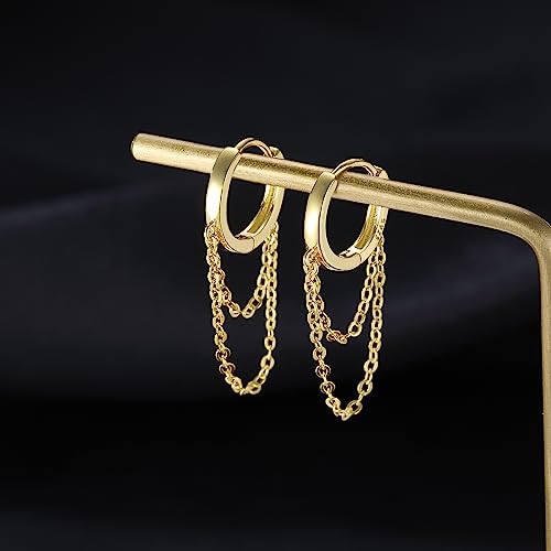 More information about SLUYNZ 925 Sterling Silver Hoop Earrings for Women Teens Minimalist Hoop Earrings Huggie Dangle Chain Tassel