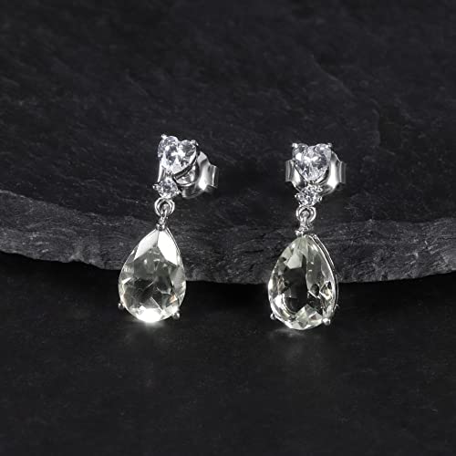 Material: Sterling SilverMetal type: Sterling SilverEarring design: DangleGem type: Green amethystExquisite Design: These sterling silver earrings are meticulously crafted with attention to detail, featuring a elegant combination of natural green amethyst and sparkling white zircon accents.Premium Materials: Made from high-quality S925 sterling silver, these earrings are not only stunning but also durable and long-lasting. The silver setting beautifully complements the gemstones, adding a touch of elegance.White Zircon Accents: Adorning the earrings are heart-shaped white zircon stones measuring 4x4mm, adding a touch of brilliance and sophistication. The round white zircon stones measuring 2mm further enhance the overall sparkle.Captivating Green Amethyst: The centerpiece of these earrings is the pear-shaped green amethyst gemstone, measuring 7x10mm. Known for its alluring green and purple hues, the green amethyst adds a touch of natural beauty to the design.Secure Claw Setting: The gemstones are securely set in place with meticulous claw settings, ensuring they are held firmly and safely. These earrings are comfortable to wear and offer a seamless blend of style and comfort. Perfect for everyday use. premium materials and excellent craftsmanship ensure long-lasting durability.