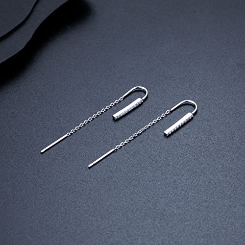 More information about SLUYNZ 925 Sterling Silver Bar Threader Earrings Dangle for Women Teens CZ Chain Dangle Earrings Drop Tassel