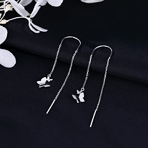 trending ! SLUYNZ 925 Sterling Silver Butterfly Dangle Earrings Chain for Women Teens Butterfly Drop Earrings Threader Tassel