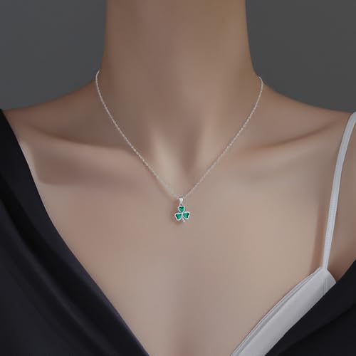 SLUYNZ 925 Sterling Silver Green Shamrock Choker Necklace for Women Teens Clover Pandant Necklace Chain