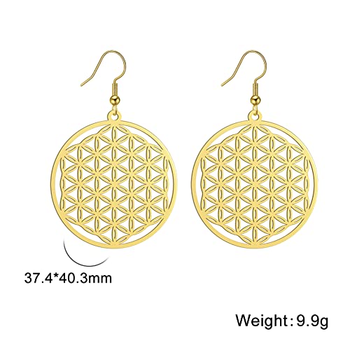 Amaxer Flower of Life Dangle Drop Earrings for Women Seed of Life Hollowed Out Pendant Charm Jewelry