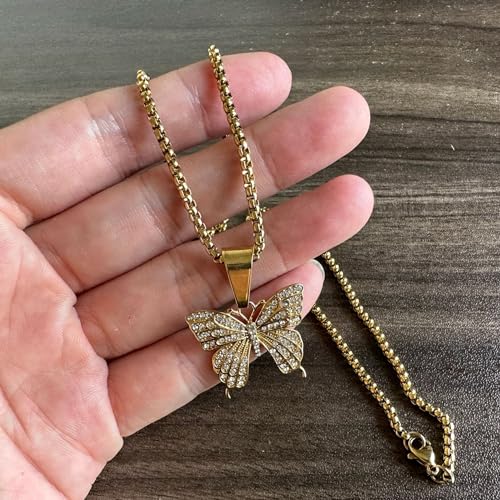 trending ! 18K Gold Plated Iced Out Stainless Steel Animal Butterfly Pendant Necklace