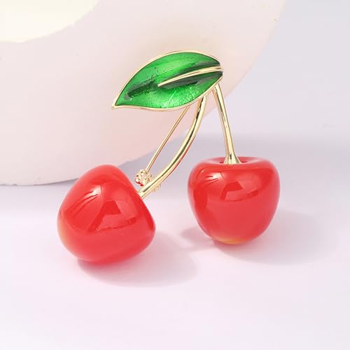 Red Cherry Collar Brooch Cute Fruit Corsage Lapel Pin Badge Wedding Shawl Pin for Girls Elegant Dress Clothing Suit Tie Acccessories Mother's Day Valentine's Day Birthday Ornament Gifts for Women Bff
