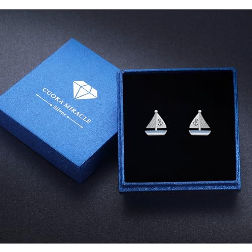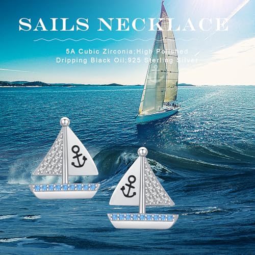 Nautical Sailboat Stud Earrings S925 Sterling Silver Sail Boat Studs Earrings Nautical Earrings mit Cubic Zirconia Sea Jewelry Earrings for WomenOcean Jewelry Gifts