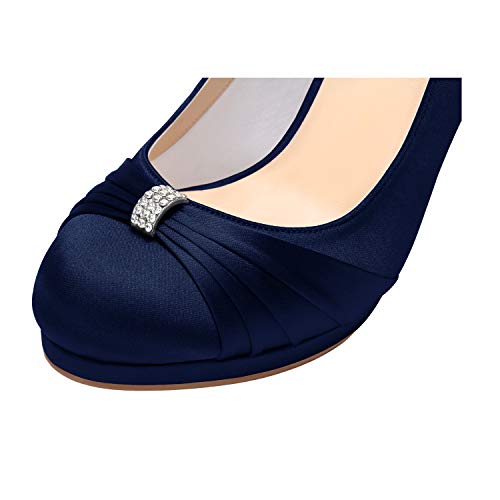 Why Choose ERIJUNOR Women pleasant Mid Heel Pumps Closed Toe Rhinestones Brooch Satin Evening Prom Wedding Shoes?