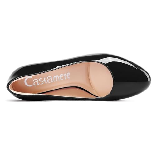 Why Choose Castamere Womens High Chunky Block Heel Round Toe Pumps Slip-on Prom Dress Patent Leather 3.2 Inches Heels?