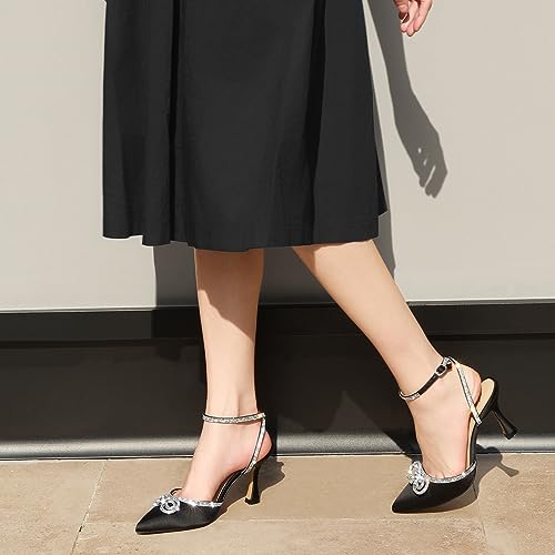 Ankis Women's Rhinestone Bow Heels Closed Toe Pumps Strappy Heels for Women