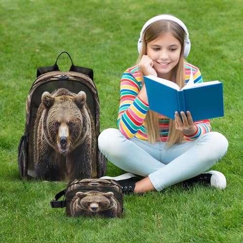 ALAZA Bear Portrait Animal Kids Backpack Elementary Girls Boys Bookbag Rucksack Primary School Bag Backpack Set with Lunch Bag