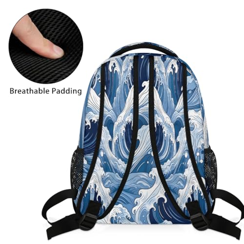 More information about Japanese Ocean Wave Kids Backpack, Lightweight School Bookbag Large Capacity Laptop Backpack Water Resistant Daypack Shoulder Bag for Teenager Boys Girls