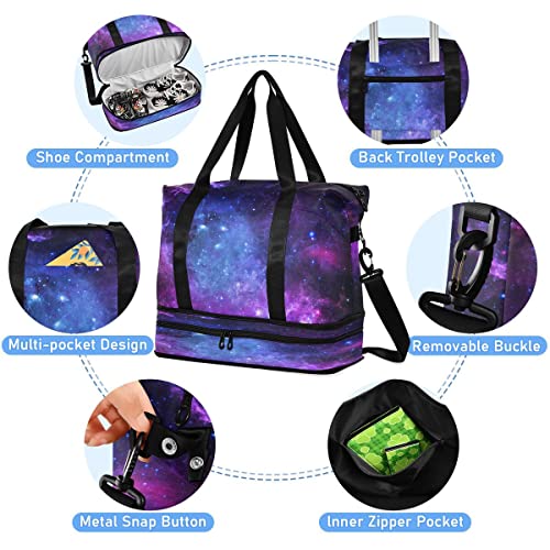 Gym Sports Travel Duffel Bag Weekender Overnight Bag with Wet Pocket Shoes Compartment and Toiletry Starry Sky for Travel, Business,Gym, Yoga