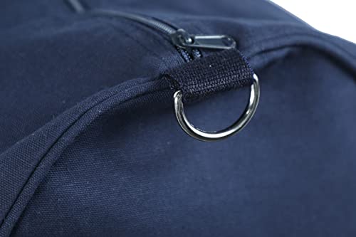 More information about Tag&Crew Lightweight Solid Round Duffle Multifunctional Foldable Canvas Carry-on Gym Bag with Adjustable & Detachable Shoulder Strap Metal Accessories - Navy Blue