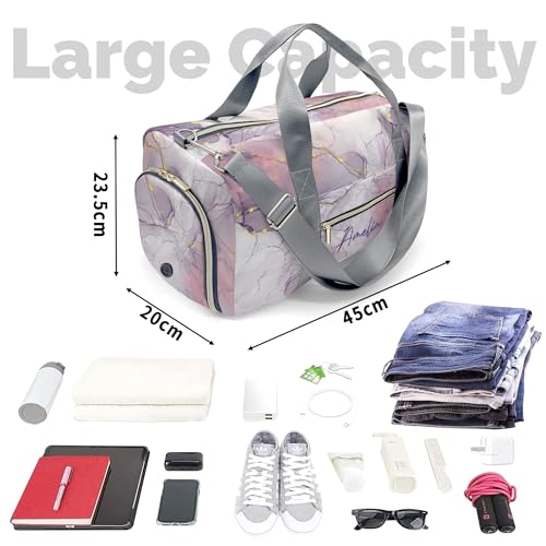 【Exclusive Customization】This is a multi-functional gym bag for travel, you can customize it by adding the name and font you want after choosing the style to create a personalized gym bag of your own!【Size Description】This duffle bag measures 17.7*7.9*9.3inch, can be carried around with a shoe compartment, suitable for weekend overnight or sports and gym travel, providing you with some convenience.【Pattern Design]】The pattern of this travel bag for gym uses traditional marble texture as the pattern design of the backpack, and the whole pattern looks highly textured, which is suitable for both men and women.【Using Scenario】This duffle bag for travel is perfect for use as a gym tote bag, sports travel bag, dance bag, carry-on bag, women's yoga class carry, practical.【As a Gift】This multi-functional duffle bag is perfect as a gift for your family or friends, the customization of the exclusive name makes this bag a special gift! It can also be used as a Mother's Day gift. Perfect for everyday use. premium materials and excellent craftsmanship ensure long-lasting durability.