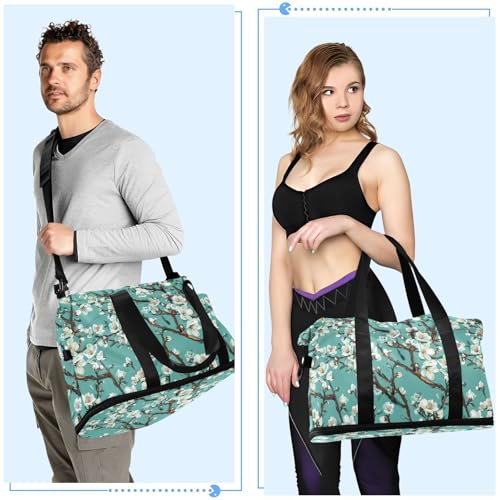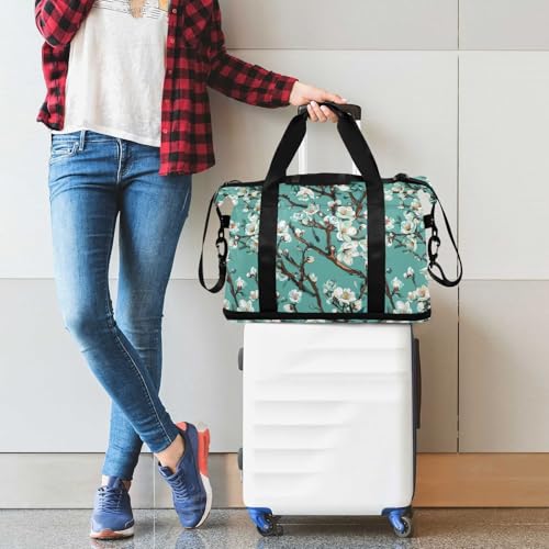 Almond Blossom blue floral Overnight Travel Duffel Bags Overnight Weekender Bags Gym Sports Carry with Toiletry Bag for Airplane Traveling 2 Pcs Set