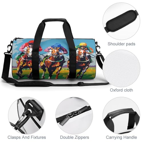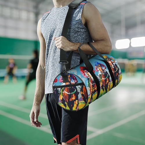 Jockeys Racing Horses Gym Bag Lightweight Duffel Bag Workout Bag Overnight Backpack Travel Bags for Men Women