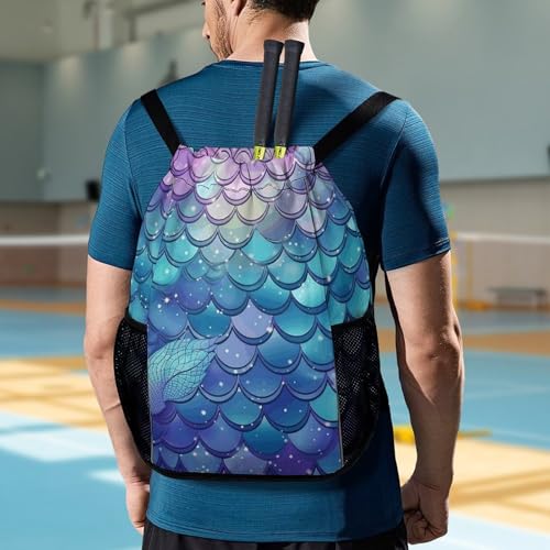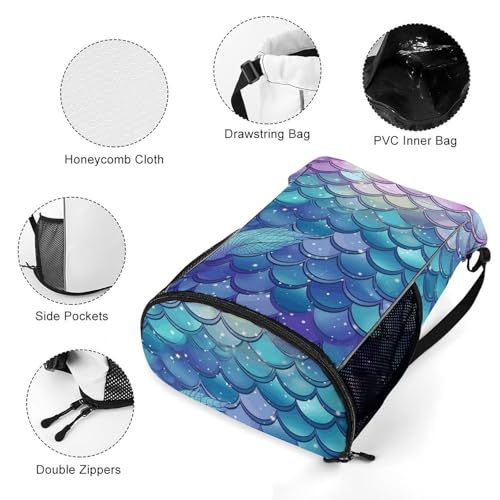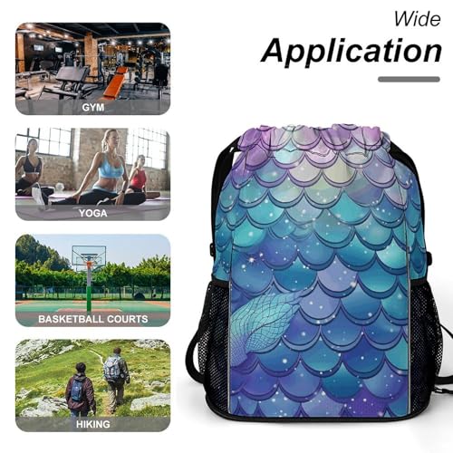 Drawstring Gym Backpack with Shoe Compartment And Wet Pocket, 28L Lightweight Waterproof Water Lily Mermaid Scales Sports Backpack for Workout Swim Beach Travel String Bag for Men Women