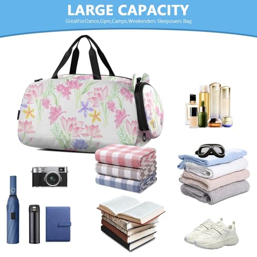 trending ! Lotus Flowers Kids Duffle Bag,Sports Gym Bag with Shoe Compartment Travel Duffel Bags for Boys and Girls