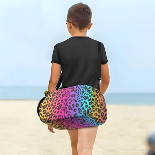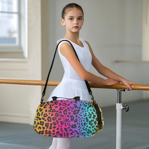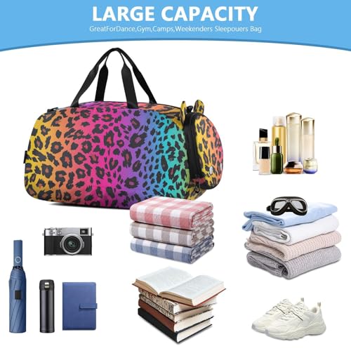 trending ! Leopard Rainbows Spots Girl's Gym Duffel Bag with Shoes Compartment Large Capacity Weekender Overnight Bags for Beach Swim Bags Pool Sports