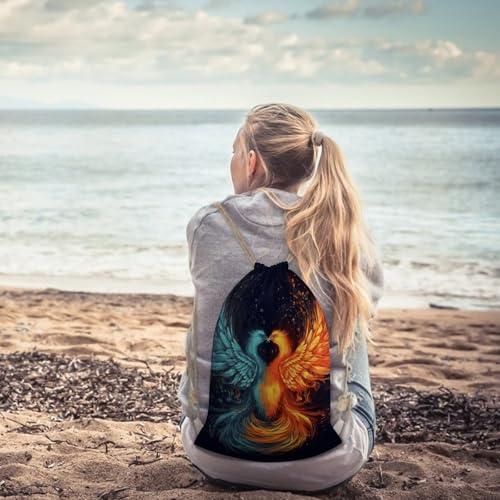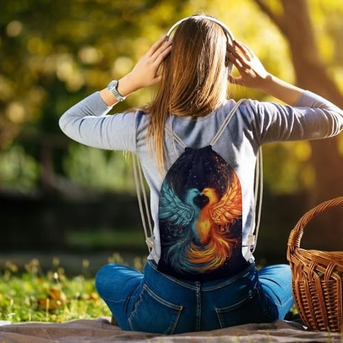 robust Canvas & Quick-Access Design: Crafted from heavy-duty canvas fabric, this Fire And Water Phoenix drawstring bag features a simple pull-string opening for instant access to essentials – ideal for fast-paced gym sessions or travel rush hours.Spacious Main Compartment + Secure Closure: Roomy interior holds towels, shoes, and workout gear, while the adjustable drawstring closure with toggle lock prevents items from spilling.Machine-Washable Sports Sackpack: Toss it in the washing machine! This lightweight backpack resists odors and stains – use mild detergent and air-dry for effortless maintenance between gym/beach trips.Multifunctions Drawstring Backpack: From sweaty fitness studios to sandy beaches and rainy commutes, the coated canvas fabric shields belongings. Use as a sports sack, travel pack, or shopping tote.Unisex Gifts: Storage drawstring bag features minimalist patterns that complement any outfit. Loved by yogis, travelers, and gym enthusiasts – arrives gift-ready for birthdays or fitness milestones. Perfect for everyday use. premium materials and excellent craftsmanship ensure long-lasting durability.