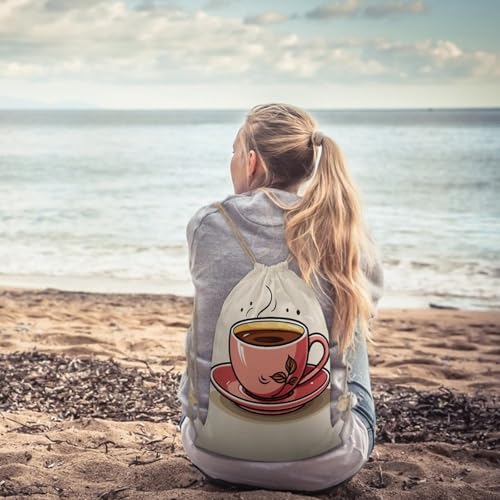 trending ! A Cup of Coffee Drawstring Backpack - Large Capacity Gym Sack Sports Travel Bag for Beach, Yoga, Camping