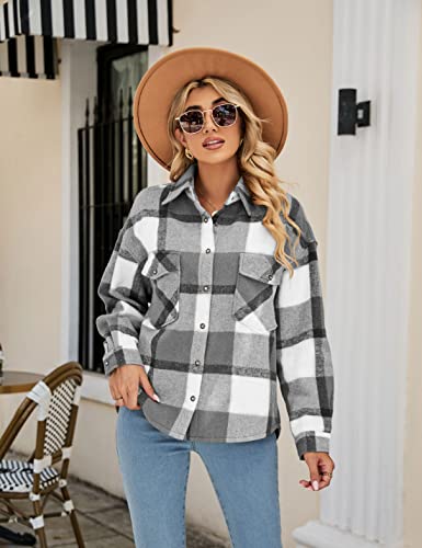 APAFES Women's Winter comfortable Sherpa Fleece Lined Jacket Fuzzy Flannel Plaid Shacket Shirt Coats (entire Sherpa Lining)