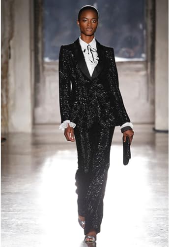 trending ! Women's Suit Sequins Single Breasted Button Jacket Pants Set for Party Night 2-Piece Tuxedos