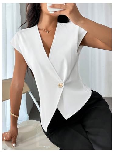 Why Choose Milumia Women's Button Front V Neck Cap Sleeve Asymmetrical Hem Office Blazers?