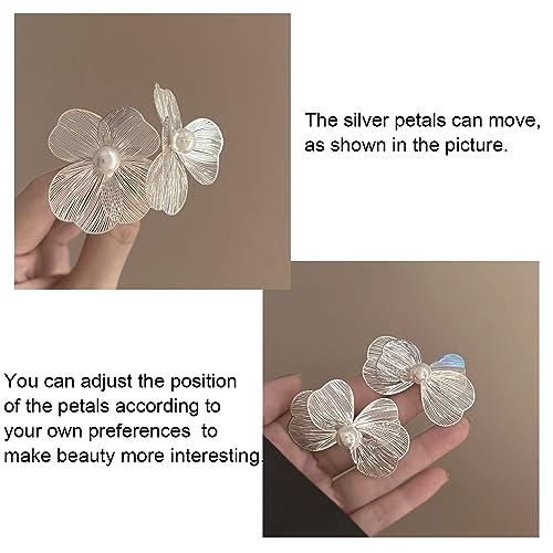 More information about White Flower Statement Earrings Boho Stud Large Metal Pearl Earrings Layered Petal Personalized Earrings Handmade Summer Beach Jewelry