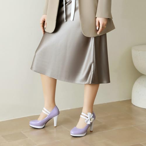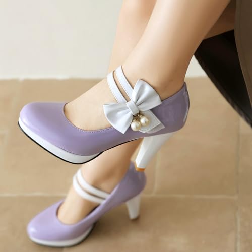 More information about AIMODOR Mary Jane Shoes Women Block High Heel Round Toe Platform Sweet Bow Patent Leather Ankle Strap Dress Pumps Ladies
