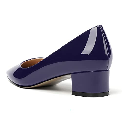 MERRORI Women's Pumps Block Slip On Patent Dress Shoes Square Toe Chunky Low Heel Pumps Shoes 1.5 Inch