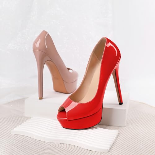 YODEKS Women's Peep Toe Platform Stiletto High Heel Pumps Thin Heel Dance Party Dress Shoes Patent Red 9.5 M US Size