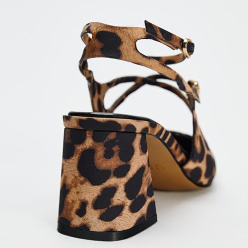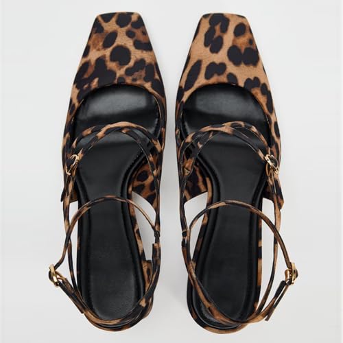 KysBloes Women Square Toe Slingback Heels Chunky Heel Ankle Strap Pumps Patent Leather Mary Janes Leopard Print Pumps with Buckle Shoes