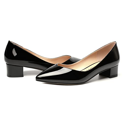 trending ! AMBELIGHT Womens Pointed Toe Patent Office Casual Slip On Chunky Low Heel Pumps Shoes 1.5 Inch