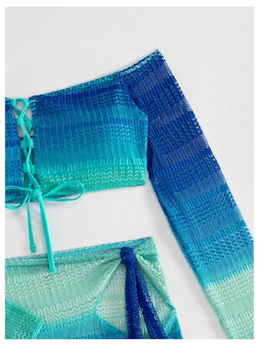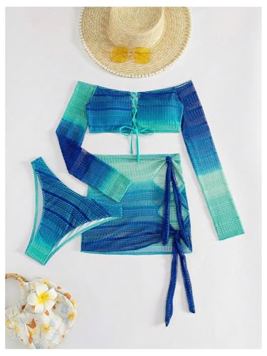 trending ! SOLY HUX Women's 3 Piece Bathing Suit Gradient Off Shoulder Long Sleeve Swimsuit Bikini Sets with Beach Skirt
