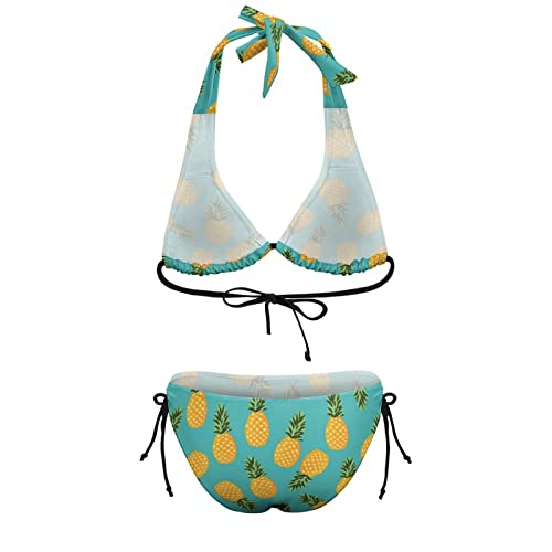 More information about Women's Pineapple Print Swimsuit Tie Side Triangle Bikini Bathing Suits
