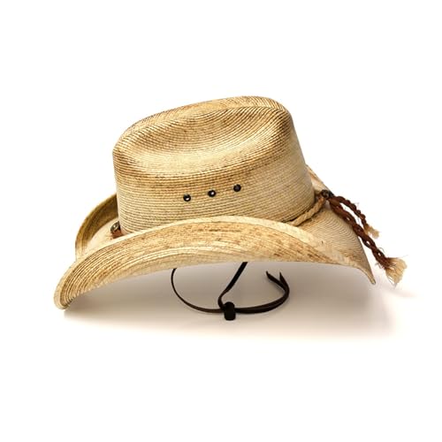 Western Express Kid's Cattleman Palm Sonora Cowboy Hat - iconic Brown with Rope Band, Conchos, and Leather Chin Strap - Kid's Elastic One Size Fits tremendously