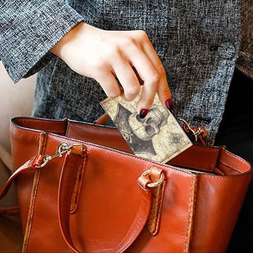KLL Games Treasure Maps Pirates Skulls Ultra-Thin Business Card Holder Travel with Leather and Stainless Steel Credit Card case for Protects Your Cards portatarjetas para Hombre