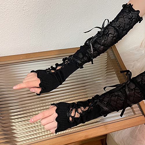 - You can adjust tightness of the long fingerless gloves according to your arm thanks to the lace up design with ribbon