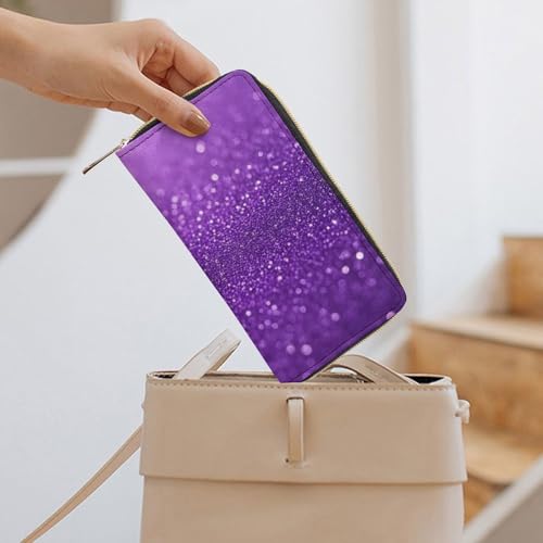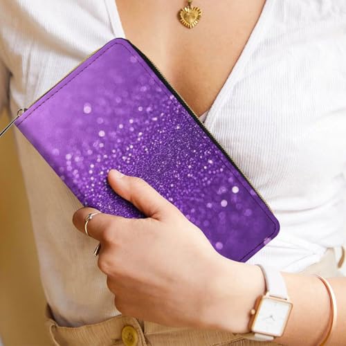 trending ! Girl's Long PU Wallet, Travel Purse Fashion Design, Huge Storage Capacity Purse, Cute Decor Zipper Wallet Purple Glitter Sparkle Pattern