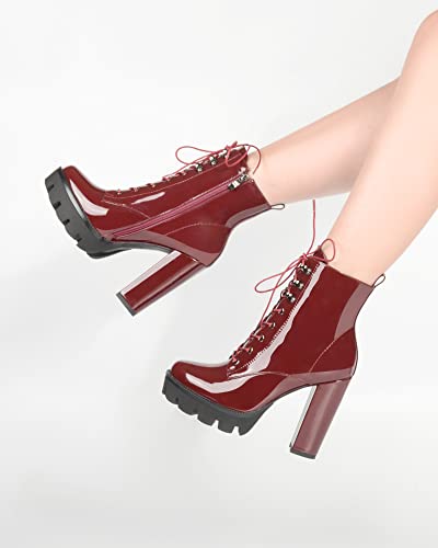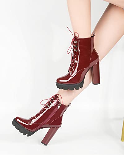 More information about ANN CREEK Women's Platform Lace Up Ankle Boots Chunky Heel Side Zipper Booties Casual High Heel Round Toe Boots