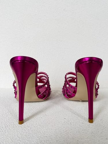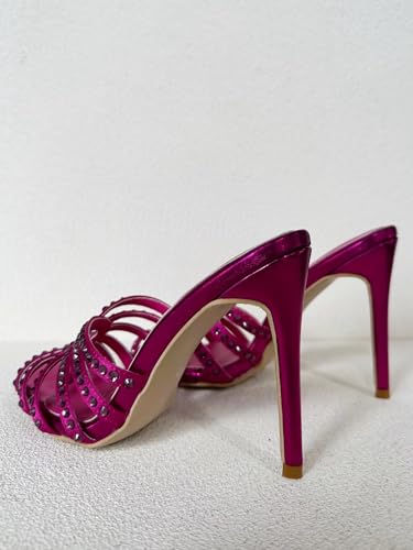Frankie Hsu Ladies Stiletto High Heeled Sandals, Pink Satin Rhinestone Gems Crystal Designer Style, Big Large Size US5-19 Unisex Shoes For Women Men