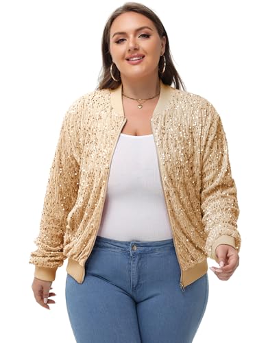 trending ! Anna-Kaci Women's Sequin Jacket Plus Size Sparkly Zip Bomber Coat With Pockets For Concert Party